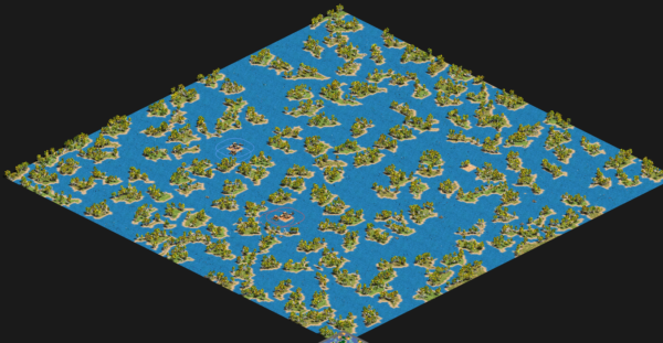 Lots of small islands full of recourses, but the biggest challenge is the land. Grab the lands and jump between islands ahead of your enemies