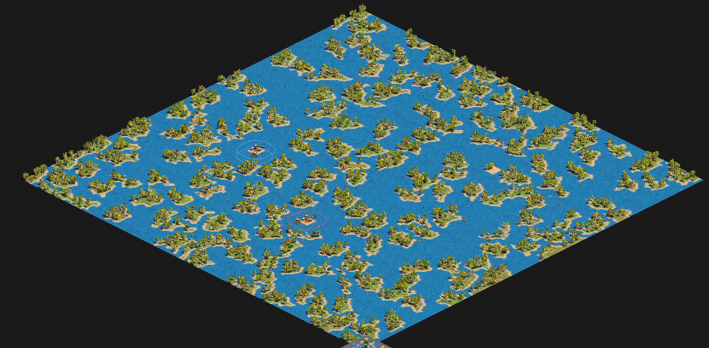 Lots of small islands full of recourses, but the biggest challenge is the land. Grab the lands and jump between islands ahead of your enemies