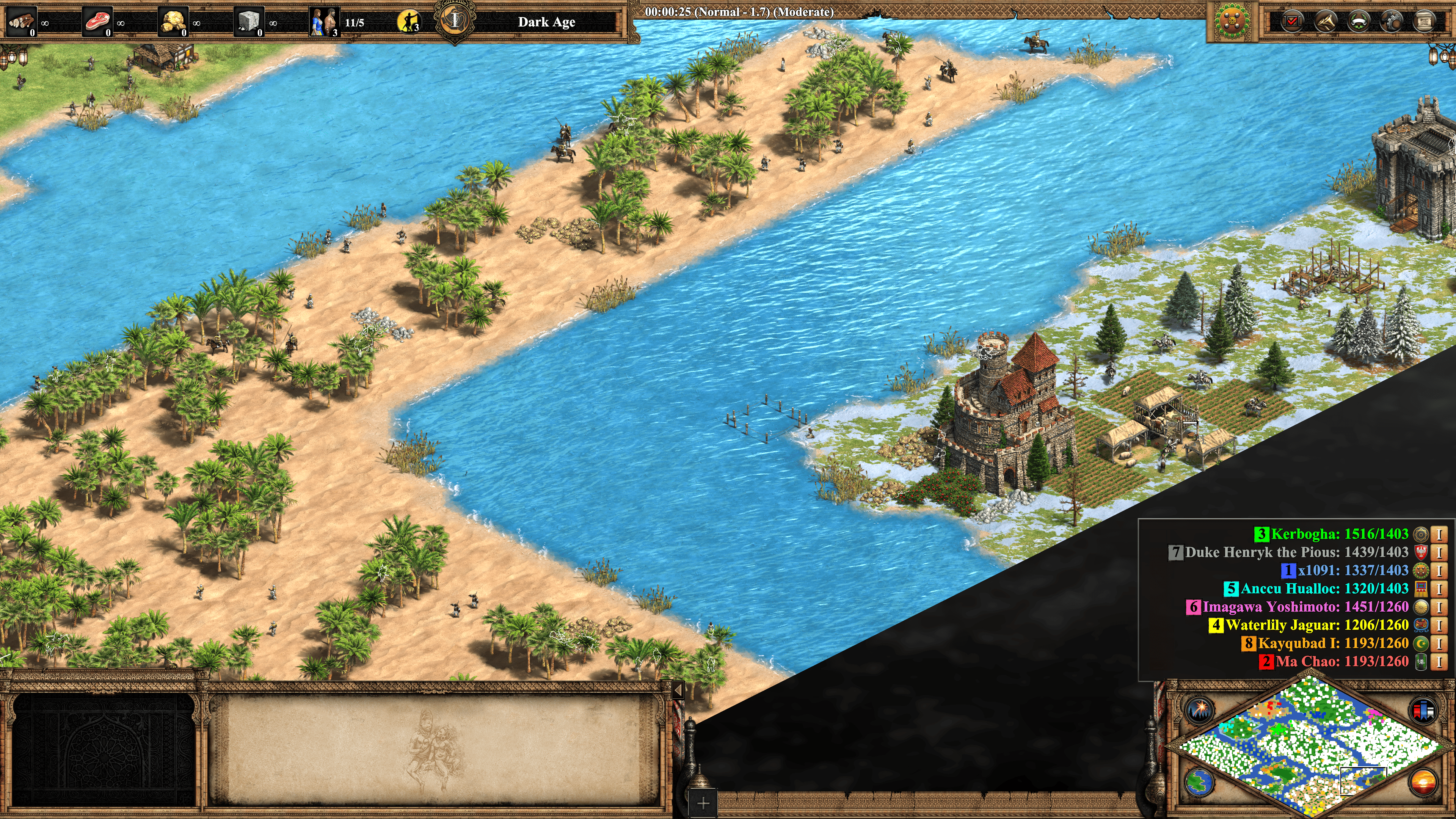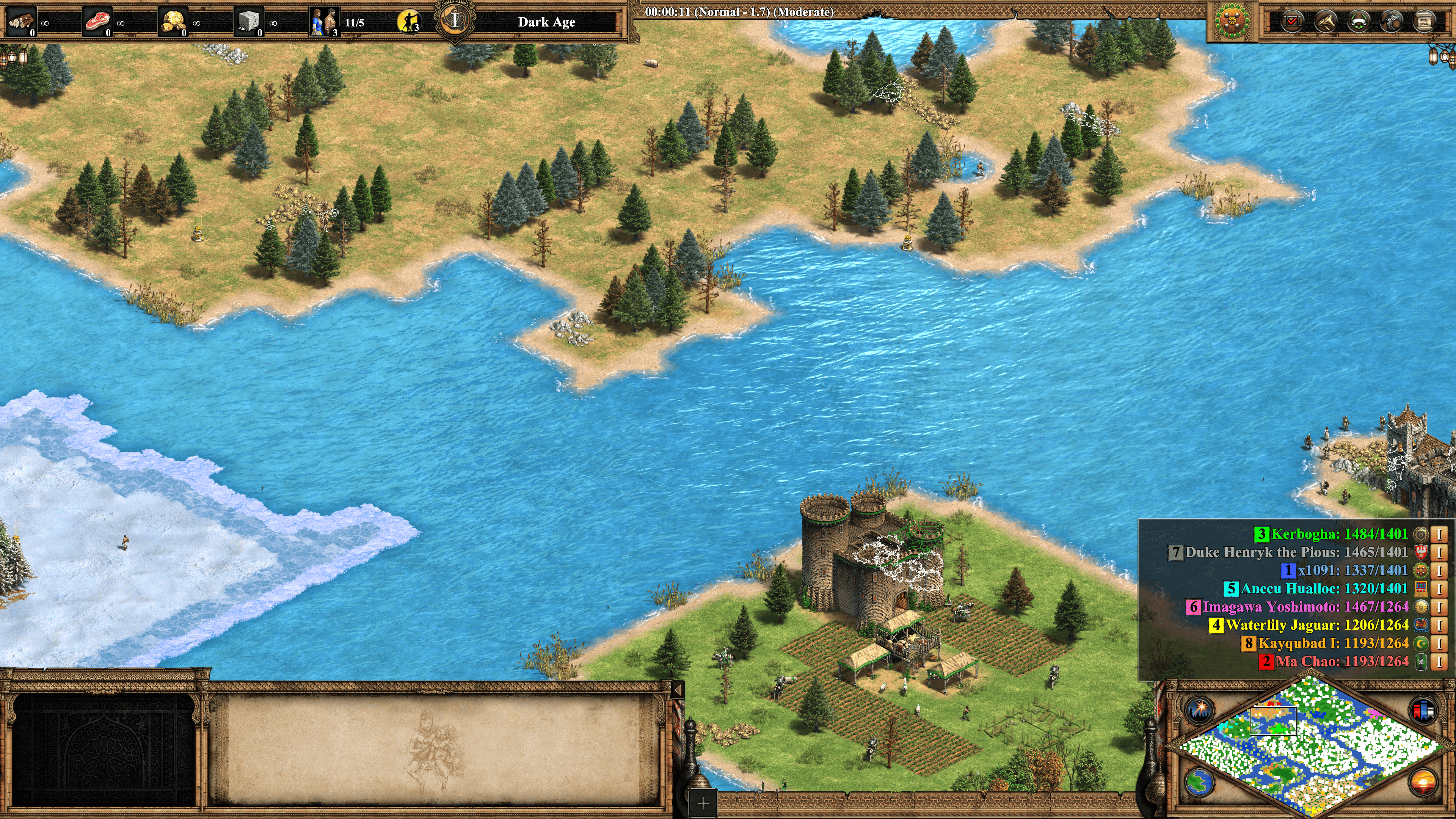 Islands-type map inspired by various campaign scenarios featuring vikings Players start in fixed positions. There are a lot of gaia units (unconvertible) with upgrades on the map.